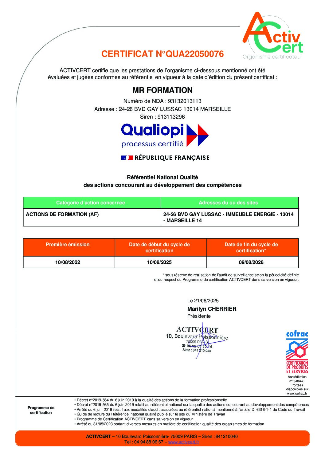 — Organisme certifié Qualiopi · NDA 93 13 20131 13